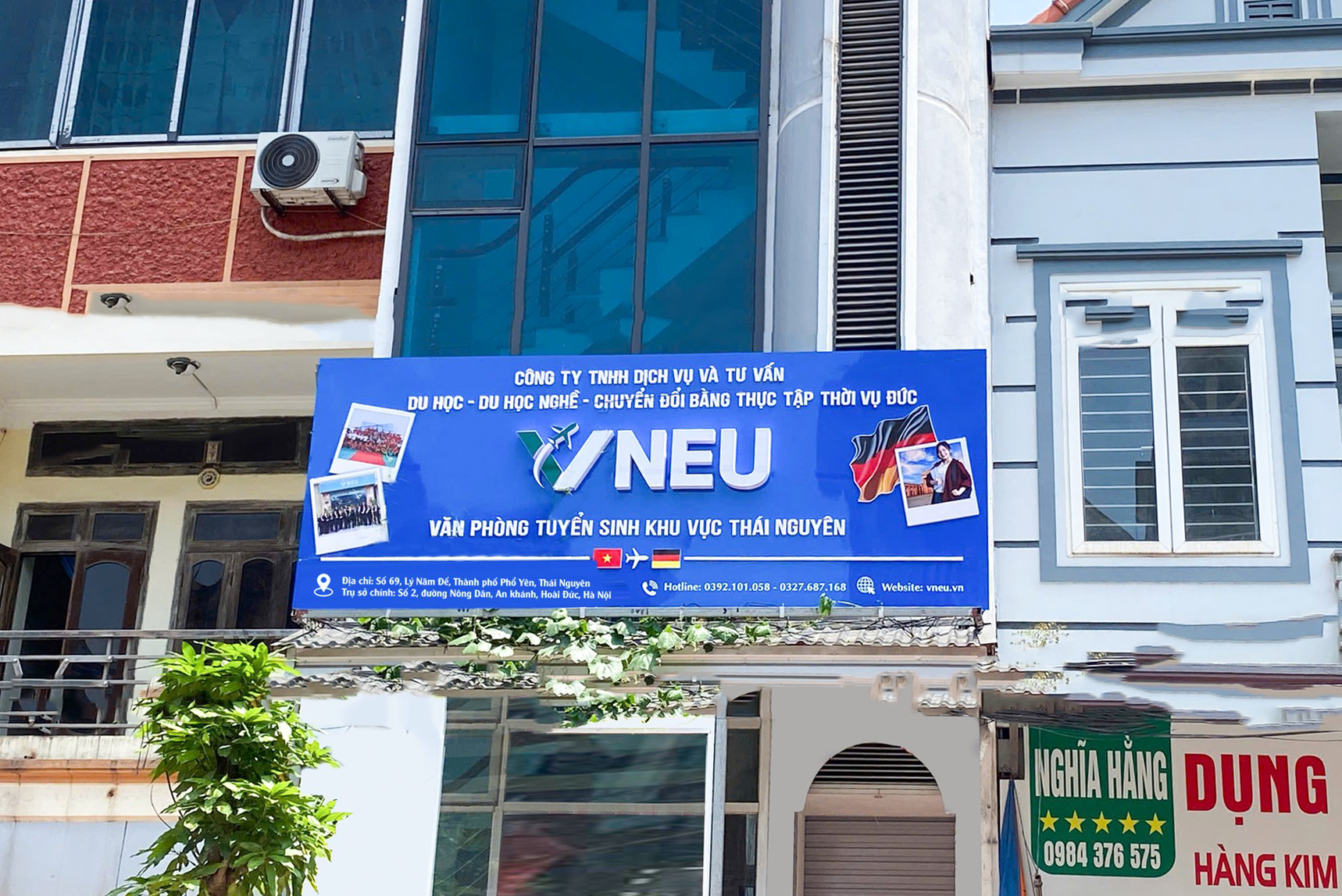 Chính vì vậy, VNEU đã quyết định mở điểm hỗ trợ mới cho các bạn tại Thái Nguyên mong muốn tham gia chương trình du học nghề Đức, do ông Nguyễn Quang Vệ phụ trách. Văn phòng đại diện Thái Nguyên phụ trách giải đáp thông tin và hỗ trợ đặc biệt cho các bạn tại thành phố này.