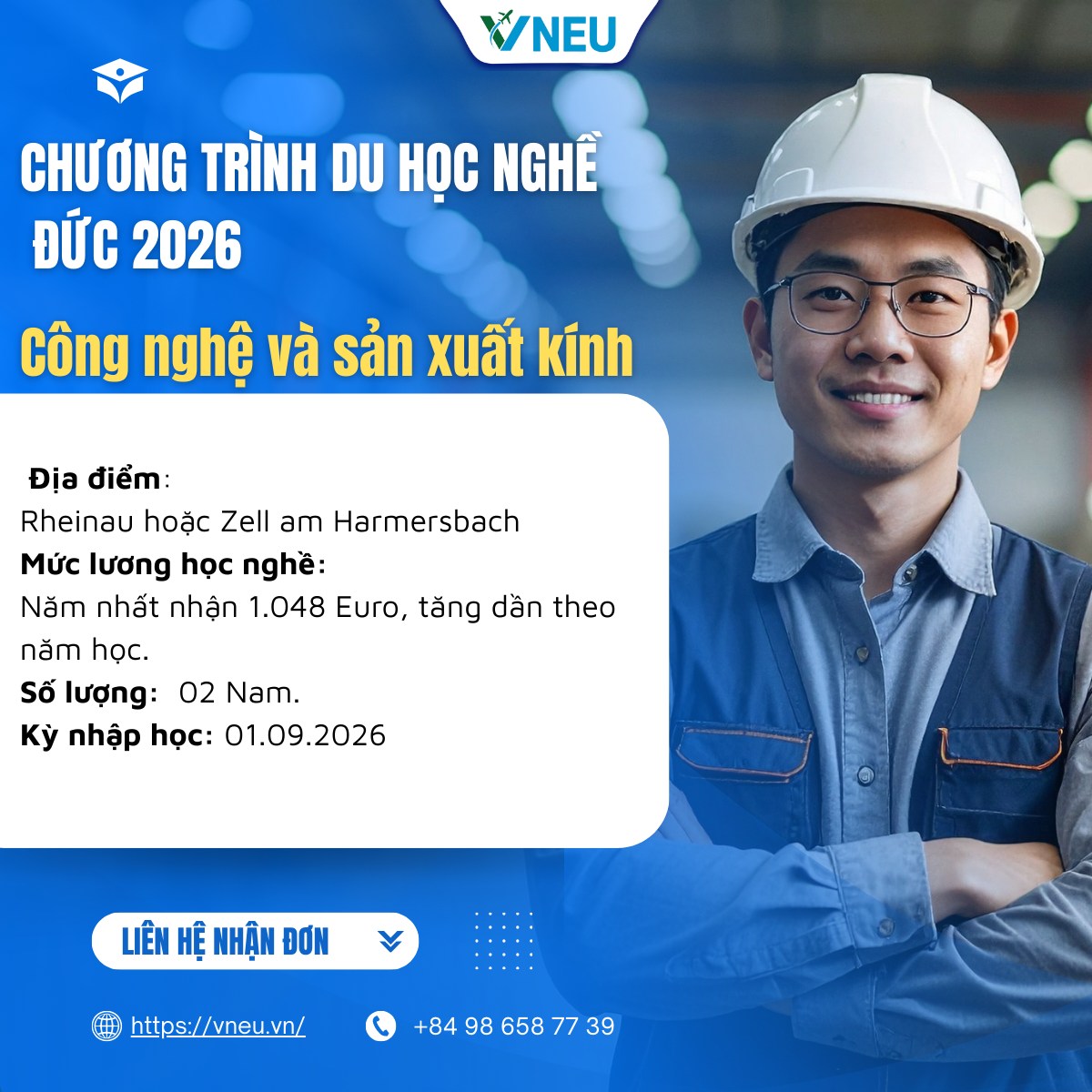 Dành riêng cho các bạn nam yêu thích kỹ thuật và muốn tiếp cận công nghệ hiện đại, VNEU mang đến đơn hàng đặc thù: Công nghệ sản xuất kính tại các cơ sở hàng đầu CHLB Đức.